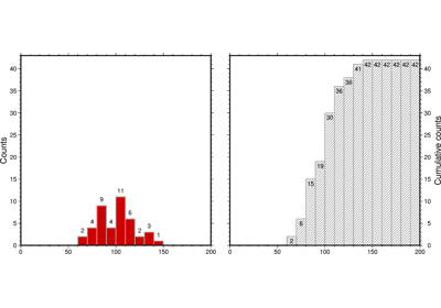 • cumulative (bool or str) – [r]. Draw a cumulative histogram by passing True. Use r to display a reverse cumulative histogram.